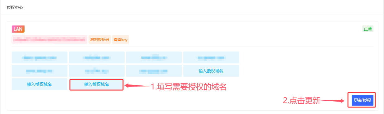 选择你要授权的产品 填写你要授权的域名,点击更新授权