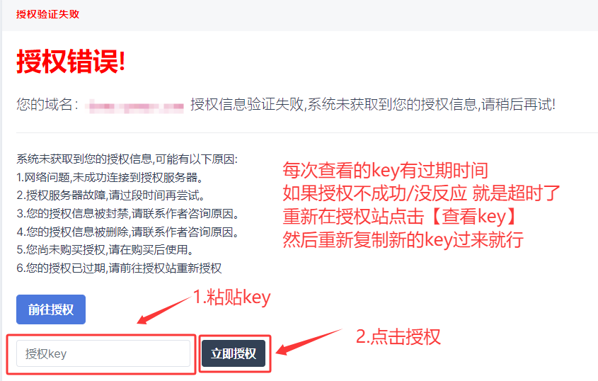 访问:【你的域名/admin】粘贴你刚刚复制的key 然后点击授权,至此授权完成